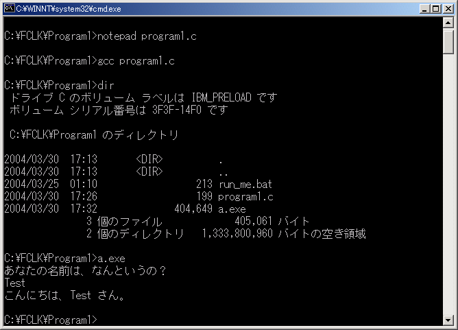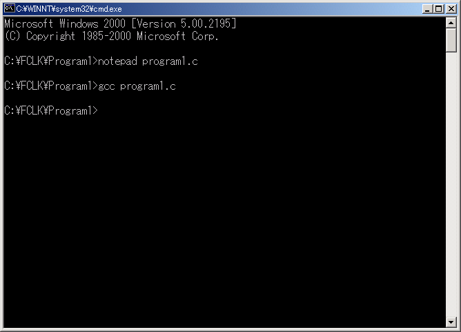 4)コマンドラインに戻って、gcc program1.c