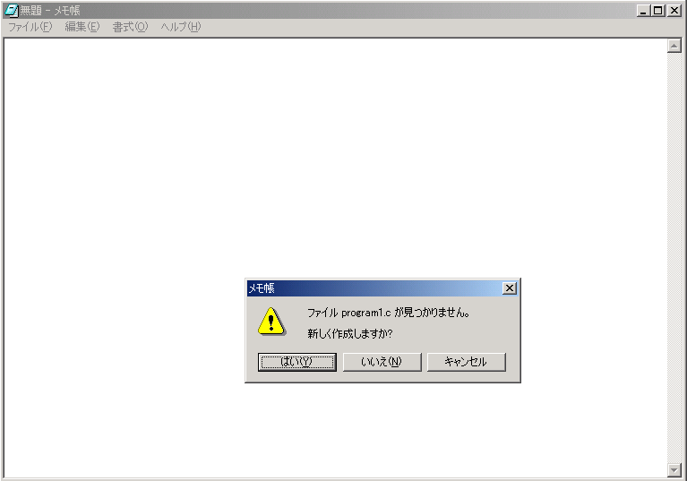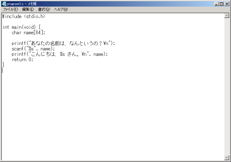 3)コマンドラインで notepad program1.c <Enter>