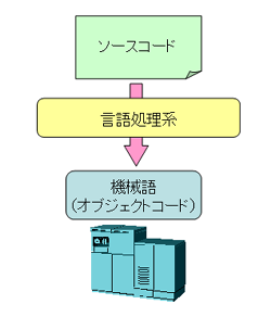 プログラマはプログラミング言語を用いて処理を記述したソースコードを作成し、言語処理系を用いて機械語命令列を生成する。この機械語命令列をオブジェクトコードやバイナリコードと呼ぶ。またこのファイルを、オブジェクトファイル、バイナリファイル、実行可能ファイルと呼ぶ。プログラミング言語の最も基本的なものはアセンブリ言語である。ソースコードは機械語命令と1対1に対応したニーモニックを用いたアセンブラで記述し、言語処理系でアセンブルすることによりオブジェクトコードを得る。