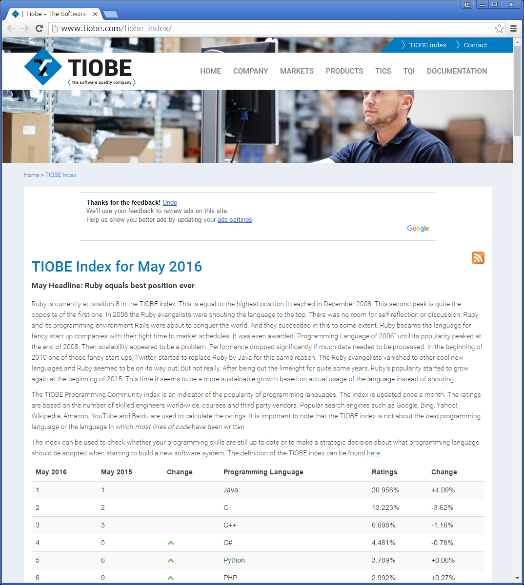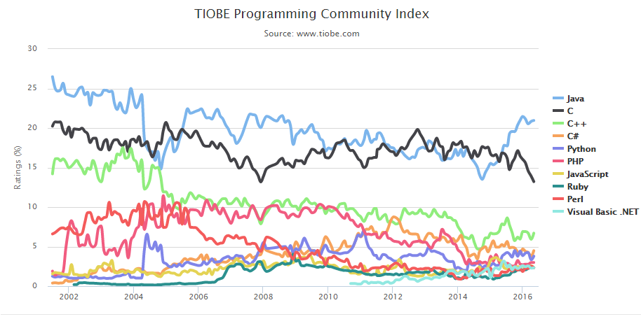 おまけ:プログラミング演習コラム by大川タッチタイピング情報技術者を志すものであれば、必ず身に着ける必要がある。プログラミングや書類の作成において、必要になる技術なので、身に着けて損はないというか、必ず身に着けるべし。 私はインターネット上のタイピング練習(無料)サイトで身に着けた(あと、当時流行した北斗の拳タイピング)。身に着けることで受ける利益は大変大きい。 C++を学ぶ意義コンピュータの動きを理解するためにはC言語を学ぶと良い。それは、基本的にマイクロプロセッサが出来る事は「メモリに対して読み書きし演算することだけ」ということが理解できるからである。メモリ上の数値をいじくるだけで、これだけ多彩なことが出来る、という発見は大きな驚きだと思う。 変数はメモリ上に配置されるものである、という理解があれば、ポインタというのはメモリ上に配置された変数のアドレスなのだ、と納得できるであろう。理解が難しいとされるポインタも大したことはない。より納得感を得るためには、アセンブリ言語も学ぶと良い。(情報工学実験Iのマイコン実習の理解を深めればよい) さてそれでは、C++を学ぶ意義とは何か? 「C++は、1983年にベル研究所のコンピュータ科学者であったビャーネ・ストロヴストルップが、C言語の拡張として開発した。(出典:Wikipedia日本語版)」 その後、長い期間、世界中で使われているからには何らかの理由があるはずである。 自分にとってどのような良いことがあるかは、各自で考えて欲しい。ただここでは、いくつかの情報を示すこととする。 世の中で使われている開発言語(世界編)TIOBE Programming Community Index ![]() ![]() 世の中で使われている開発言語(日本編)年収ランキング2016!言語別 プログラミング言語別 年収・求人数ランキング(2010年版) 【株式会社ワークポート調べ「2010年IT業界の転職市場」】 プログラマーの就職に有利な10のプログラミング言語 |
