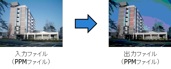 ユーザが指定した画像ファイルを読み込み,減色または上下反転させて別ファイルとして出力する